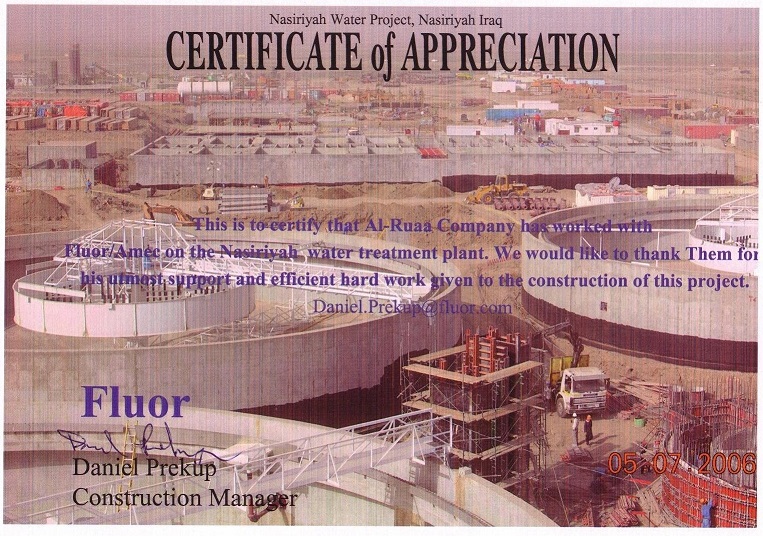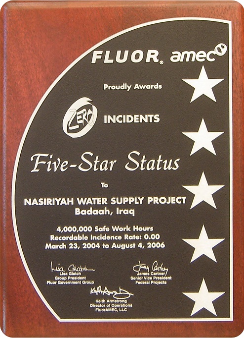 Five-Star Status awarded by Fluor®amec after completion of Nasiriyah Water Supply Project in Badaah, Iraq